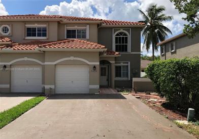 Spacious 3/3 townhome with large patio and one-car garage in Vizcaya, a guard-gated community. The property features a bedroom downstairs, a washer and dryer upstairs, and has tile flooring downstairs and hardwood floors upstairs. Community is conveniently located near the turnpike and I-75.
