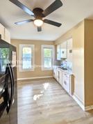 Discover the convenience and comfort of this upper unit, designed to meet your everyday needs. This home features a kitchen with a refrigerator and microwave, making meal preparation simple and efficient. The wood plank floors add a touch of style and are easy to maintain. Stay comfortable year-round with the efficient gas furnace and ceiling fans that help regulate the indoor climate.