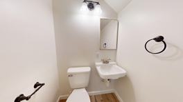 The main level includes a convenient half bathroom, ideal for guests. Upstairs, both bedrooms feature large closets and excellent natural light. The full bathroom has been beautifully updated with modern fixtures and a stylish vanity.