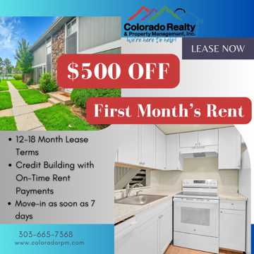 **All Colorado Realty & Property Management residents are enrolled in the Resident Benefits Package (RBP) for $45.95/month which includes renters insurance, HVAC air filter delivery (for applicable properties), credit building to help boost your credit score with timely rent payments, $1M Identity Protection, our best-in-class resident rewards program, and much more! More details upon application.**