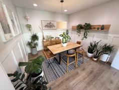 Inside, you’ll find a bright, open floor plan with a neutral color palette and beautiful wood shutters throughout. The entry features a formal sitting room and dining area with large arched windows that fill the space with natural light.