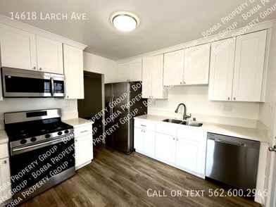 Welcome to your new home in Lawndale, CA! This beautiful standalone house offers two spacious bedrooms and a full bathroom, complete with a bath vanity and ceramic flooring. The kitchen is a chef's dream, boasting quartz countertops, ample cabinet space, and modern appliances including a dishwasher, microwave, and a fridge (as is). The open-concept living room is perfect for entertaining, featuring vinyl click flooring and new blinds/window screen for added privacy. The home also includes a gas wall heater, ceiling fan, and washer/dryer hookups for your convenience. Enjoy the luxury of a private, enclosed yard and the convenience of a garage, plus an additional open parking space. This home is freshly painted in a full two-toned scheme, adding a touch of elegance to the space. With spacious closets and a host of other amenities, this home is designed for comfortable and stylish living.