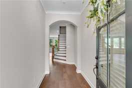 UPGRADES GALORE! Soaking tub, upgraded appliances, pot filler, fenced yard, office spac, and media room! This thoughtfully designed home is on a quiet cul-de-sac with a wooded backdrop, offering both privacy and beauty. The gourmet kitchen is a true centerpiece, showcasing a large entertaining island, quartz countertops, a walk-in pantry, soft-close cabinetry, an upgraded oven and stove, and the convenience of a pot filler. Flowing seamlessly into the family room with its inviting fireplace, the open floor-plan extends to a stained and sealed rear deck that overlooks the private, aluminum-fenced backyard. The upper level is a treat! You'll love the spacious owner's suite complete with a comfortable sitting area and a luxurious bath featuring a huge walk-in shower, an oversized soaking tub with a pedestal faucet, and an overhead shower and generous master closet. A dedicated office with a pocket door and custom built-in desk provides the perfect space for working from home. The secondary bedroom is large with a walk in closet and a beautiful en suite bathroom. The terrace level extends the home's versatility with a guest bedroom, full bath, and a bonus or media room enhanced by a 120-inch movie screen and an overhead projector wiring package. Every detail reflects quality craftsmanship, from the rich hardwood flooring on the main level, stairs, and upstairs hallway, to the upgraded window and door trim package, solid core doors, and custom blinds. The home if fully wired with CAT 7 for seamless connectivity and includes additional thoughtful touches such as multiple garage outlets and overhead storage racks. Full of natural light with high ceilings throughout, this home blends elegance, comfort, and modern convenience! Close to shopping, schools, and all the fun in downtown Canton.