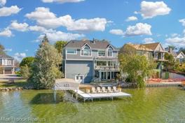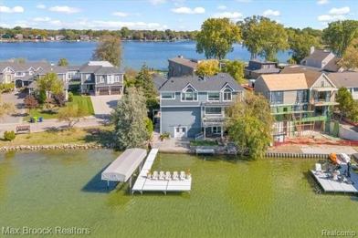 An amazing opportunity to live the lakes lifestyle on the peninsula of Sylvan Lake. Custom built one of a kind waterfront home with quality construction and attention to detail with all of today's amenities. Spectacular panoramic views from every window. Open floor plan with large Great Room w/ gas fireplace and doorwall leading to outside dining and multi-level decking. Gourmet granite island kitchen with high-end appliances, dining area with custom built-ins. Wide staircase leading to elevated second floor. Versatile enclave with floor to ceiling windows offering many possibilities. The luxurious primary suite boasts panoramic lake views with vaulted ceilings, Euro bath with oversized walk-in rain shower shower with floating double vanities. and walk-in closet. 2 additional bedrooms with full tiled bathroom. Finished walkout lower level features a comfortable living area, wet bar, sauna, full tile bath and laundry room. Direct access to covered decking, green space and docking offering several entertainment areas. Large storage area for all your summer fun. Enjoy life on an all-sports lake, with access to private resident parks and a vibrant community filled with year-round events.