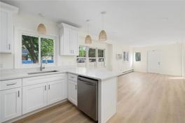 Move right into this fully fenced and renovated one level home with 2 beds and 1 bath that perfectly blends modern design with everyday functionality. Located near Warwick Neck and the well-known Rocky Point Park, this entire property has been thoughtfully updated, showcasing upscale finishes and a contemporary aesthetic. The naturally lit, open floor plan features a beautiful kitchen with high-end cabinetry, quartz countertops, premium stainless-steel appliances, and stylish light fixtures ideal for both entertaining and daily living. The chic bathroom offers a spa-like experience with double vanity, elegant tile work, and a clean vibe. Notable upgrades include new flooring, new vinyl fencing, new water tank, exterior/interior fully painted, as well as, updated electrical/plumbing, and new wall ac unit. Downstairs, a partially finished basement offers additional living space that could be used for a family room, office, gym, or play area.