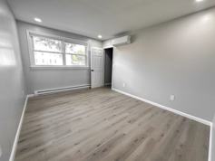 Enjoy an open-concept kitchen with quartz countertops, a white-and-gold backsplash, modern appliances, and a stylish island ideal for cooking or entertaining. Reversible ductless units provide both AC and heat, complemented by efficient baseboards.
