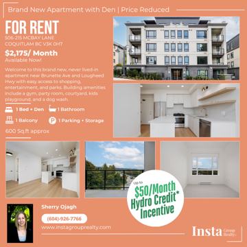 *Limited-time offer from landlord: Sign a one-year lease and receive a BC Hydro credit of up to $50/month for 12 months (maximum $600 total). Offer valid for approved applicants who sign a lease and take possession by November 1st, 2025. Tenants are responsible for any Hydro charges exceeding $50/month. Terms and conditions apply. Contact Insta Group Realty for full details.