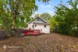 Out back, enjoy a red wooden deck surrounded by trees, ideal for relaxing outdoors. The home sits within 10 minutes of downtown Minneapolis and offers quick access to local coffee shops, parks, and major routes.