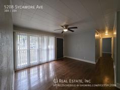 5208 Sycamore Ave, Kansas City, MO is a 3 bedroom, 1 bathroom apartment for rent. It is located in the Eastwood Hill East neighborhood of Kansas City. It has apartment amenities including in-unit laundry, central heat, on-site laundry, deck, air conditioning, ceiling fan, and outdoor space. Cats and dogs are allowed, making it a pet-friendly apartment.