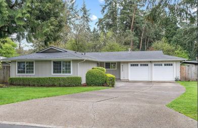Welcome to this charming 3-bedroom, 2-bath ranch-style home in a highly sought-after Prime Lake Oswego neighborhood. This residence boasts beautiful hardwood floors throughout, a spacious living room with custom built-ins, a cozy wood-burning fireplace, and French doors that lead out to the backyard. The updated kitchen is equipped with Stainless Steel appliances, tile countertops tops and white shaker cabinets, perfect for culinary enthusiasts. Situated on a large lot with mature landscaping, the property offers a serene outdoor retreat, including a covered side patio. Additional features include air conditioning, a convenient laundry room with a washer and dryer, and a two-car garage.