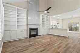 Tucked in a quiet Alpharetta community, this home has a simple sense of comfort that shows up the moment you walk in. The main level feels open yet grounded. Enter a two-story living room with warm natural light, a gas fireplace framed by built-ins, and a layout that connects seamlessly to the kitchen and out to the back patio. The wooded lot behind it makes mornings quieter and evenings calmer, a little pocket of privacy right where you want it. The primary suite on the main floor adds effortless flow to daily life, while upstairs you'll find two spacious bedrooms and a full bath that works well for guests, family, or a flexible home office setup. Freshly painted with new LVP flooring, updated light fixtures, and ceiling fans throughout, the home feels crisp and cared for. You'll find thoughtful storage at every turn! Home provides two kitchen pantries, several large closets, and a garage with space for another car in the driveway without blocking anyone in. Close to GA-400, Avalon, the Greenway, and all the conveniences of North Fulton. This is one of those homes that's just easy to live in.