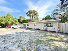 The property is equipped with solar panels, a whole-house Generac generator, a recently installed air conditioning unit, and a relatively new roof. Indoors, the property features laminate wood flooring throughout. The primary suite includes a newly constructed walk-in closet, new flooring and a secondary closet for additional storage. Outdoors, the property offers two backyard storage sheds, an enclosed outdoor laundry room, a single-car garage, and an additional cement slab. An open patio in the backyard completes the space, providing an ideal setting for entertaining or enjoying tranquil evenings outdoors. This home seamlessly combines modern upgrades, coastal accessibility, and versatile outdoor space.
