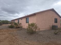 Home has a master bedroom with it's own master bath. Tile floors and come partially furnished. Has all the mainstay appliances and washing machine and dryer. Beautiful hickory cabinets and sunset canyon granite countertops and peninsula, in the kitchen. Large sectional couch and T.V. area. Master bedroom comes furnished. There is a guest room that is unfurnished, the bathrooms come furnished, and the other bedroom is currently furnished as an office. Able to be cleared out if necessary to be used as a bedroom. Frontage access is from a paved road and is just outside Saguaro National Park. Peaceful old Tucson desert feel.