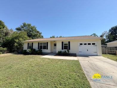 Located in Fort Walton Beach, this beautifully updated 3-bedroom, 2-bathroom home features a 1-car garage plus additional driveway parking. The thoughtfully designed split-bedroom floor plan offers privacy in the sleeping areas while maintaining an open and connected layout in the main living spaces. The inviting living room includes a cozy electric fireplace, creating a warm and welcoming atmosphere, perfect for relaxing evenings at home. The modern kitchen is equipped with granite countertops, stainless steel appliances, and a convenient breakfast bar that flows seamlessly into the dining area, deal for both everyday living and entertaining. The spacious primary suite includes a walk-in closet and a stall shower, while two additional bedrooms and a second full bathroom are located on the opposite side of the home. A laundry closet, located just off the kitchen, comes complete with a washer and dryer for added convenience. Step outside to enjoy the fully fenced backyard featuring an open patio and shed as-is, perfect for relaxing or hosting outdoor gatherings.