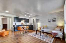 Lifestyle is included with this fully furnished Light & Bright Fully Remodeled 1 Bedroom, 1 Bathroom, Condominium located right in between Arcadia and the Biltmore. This brand new Kitchen includes Stainless Appliances, Navy Blue Cabinetry, Quartz Counters, & all new LVP Flooring. The newly designed bathroom features a deep soaking tub. This Mid-Century complex offers beautiful grounds and Community Pool & Laundry. All the amenities necessary for your winter visit to feel at home for Work, Play, Relax, & enjoy everything AZ has to offer inc. Spring Training, Barrett Jackson, Waste Management Phoenix Open, Arabian Horse Show. Close to restaurants, shopping, nightlife, Old Town Scottsdale. WiFi Streaming Smart TV & Utilities included. Location, Location, Location.