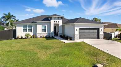 Discover modern living in this beautiful single-family home in Cape Coral, available now and move-in ready. Only lived in for 5 months, this residence feels brand new and features 3 spacious bedrooms and 2 full bathrooms, including a master suite with dual sinks and a walk-in closet. The open design is filled with natural light, creating a warm and welcoming atmosphere throughout. Enjoy central air, in-unit laundry, modern finishes, and a large attached garage for parking and storage. Step outside to a generous backyard, perfect for entertaining, relaxing, or giving pets and children room to play. A newly installed fence ensures privacy and peace of mind. Located in a quiet neighborhood with excellent access to shopping, dining, and schools, this turnkey home has everything ready for you—no repairs, no updates, just comfort and convenience. Cats and dogs are welcome! Listed by: Lifestyle International Realty Listing posted by Linda Castanon (786) 933-9164. [SYNDID 4141615 11042025]