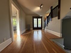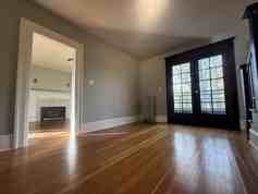 The Living Room is located next to the Flex Space and is a large room with bay windows and restored wood flooring. The wood flooring is carried through the Dining Room, the Flex Space and the Kitchen and the hallway.