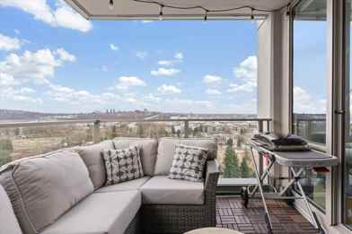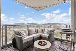 Welcome to a stylish 2-bed + den, 2-bath home with expansive views and thoughtful upgrades throughout. Oak hardwood flooring, custom millwork, and a soft, modern palette set an inviting tone the moment you walk in. The sleek kitchen impresses with a gas cooktop, quartz countertops, and a large island—perfect for everyday meals or entertaining. Open living + dining flow seamlessly to a private balcony for morning coffee or sunset views.