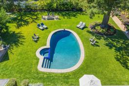 Modern farmhouse style single level home with guest house on 1 acre with vineyard views & resort-like indoor/outdoor living in desirable Saint Helena. Designed by legendary architect, Howard Backen, 4 BDR 3 BA approx 3000 sq ft main house features series of indoor spaces with vaulted ceilings, skylights & multi-slide glass doors that open to expansive outdoor entertaining areas including pool with built-in spa, fire pit, putting green & lush lawn. Main house great room with gourmet kitchen including stainless appliances & counter seating opens to spacious family room with wet bar & views of the spectacular grounds. Formal dining opens to spacious 2nd family room with fireplace both with extraordinary views. Large main ensuite with seating area offers spa-like bath, walk-in closet & direct access to pool & spa area. 1 BDR 1 BA approx 1200 sq ft guest house features great room with vaulted ceilings, skylights, full kitchen with stainless appliances, counter seating & large ensuite with stunning vineyard views all opening to the resort-like outdoor entertaining areas. Addl features include automatic blinds, sound system, raised beds, fruit trees & 2 car garage. Close to downtown St Helena with world class dining & wine tasting!