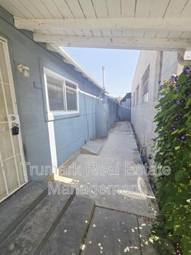 1. This One floor Apartment House unit comes with updated flooring, newer cabinets, fresh paint, updated light fixtures and extra storage in the hallway! The kitchen has a double stainless-steel sink and a stove. The living room has an open lay out with the kitchen and features a wall AC and a wall heater. Covered awning at the front door area and small patio area next to front door. Tenant has 1 gated area for parking with front street entrance. No laundry and no fridge on the property.