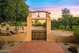 Welcome to this Tucson ranch for your winter retreat! Located on famed Woodland RD in the prestigious Tanque Verde Country Estates, this 6.4 acre equestrian property with beautiful mountain views has private gated entrance, extra garage, RV covered parking, completely fenced with free range irrigated pastures w/access to riding/hiking trails. On site is a spacious pool, pickleball, bocce ball and horseshoes. Choose between the gas or built in wood burning BBQ using mesquite from the ranch's 140 mesquite trees. The 4,244 sqft ranch house appointed with quality, timeless southwest furnishings offers 4BD/3BA, high wood-beamed ceilings, gourmet chef's kitchen, family room, office, and 2 stone fireplaces. The 600 sqft1BD/BA guest house is located off the courtyard. Enjoy true southwest living!