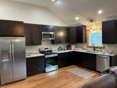 This studio loft is tucked into the hillside of a beautiful mountain forest. Newly constructed, our Loft features a full-sized kitchen and bathroom complete with granite countertops, modern cabinetry, and new appliances. Includes a king-sized bed, cozy living area, large TV, breakfast nook, and private entrance above a detached garage included for guests. Utilities (all included) are billed separately at $300/mo.