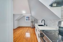 Charming one-bedroom apartment on the upper level of a Cape-style home. Features a modern eat-in kitchen with stainless-steel appliances and quartz countertops, a bright living room, and a stylish spotlight bathroom. The spacious bedroom offers comfort and plenty of natural light. Conveniently located near shops and transportation.