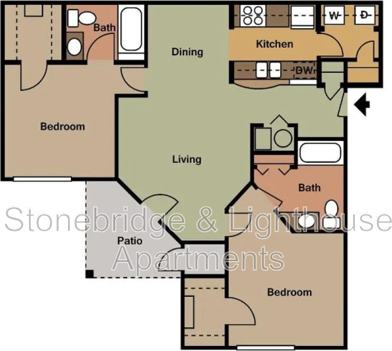 Welcome home to this spacious, second floor, split bedroom apartment. Each spacious bedroom has a walk-in closet and are on opposite sides of the main living space. All units at Lighthouse Apartments have full size washer/dryer connections and a storage closet on the patio or balcony.