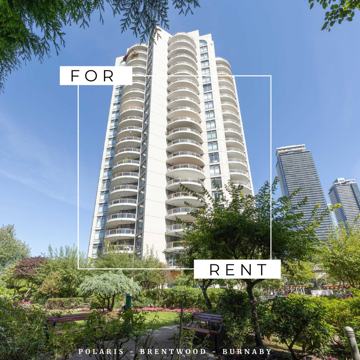 Do not miss this opportunity to come home to this stunningly laid out and immaculately maintained 2 bedroom & den in the coveted Polaris building at Brentwood! Enjoy urban living in this rare corner unit - at the heart of everything. 1,135 sf living space features breathtaking views from every window. Home comes complete with a fully equipped kitchen, elegant white cabinetry, and ample storage and counter space. Spacious living room offers floor-to-ceiling windows, abundance of natural light in every room, cozy gas fireplace in living room, & access to a large balcony with impeccable views that are sure to impress. Bedrooms are on opposite sides for extra privacy. The master has a large closet, ensuite, & balcony access. Walk to Skytrain, Amazing Brentwood Mall, Whole Foods, Restaurants, and more. Polaris has shared EV parking stalls and residents have private access to a car wash. 1 parking 1 locker. Pet friendly with landlord approval and pet deposit.