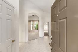 This charming Country Rose model is nestled on a quiet cul-de-sac and offers comfortable, resort-style living. The home features 2 bedrooms, a den/office, and 2 bathrooms, including a primary suite with both a soaking tub and a separate shower with grab bars for added convenience.