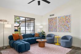 Now available for rent! Explore the interior boasting a spacious living room filled with abundant natural light, vaulted ceilings, & wood-look floors that create a warm, open feel. The bright great room features a sunny bay window in the family area & French doors that open directly to the backyard—ideal for indoor-outdoor living. Wide-open kitchen showcases SS appliances, white cabinets with crown moulding, a stylish backsplash, & quartz counters. All bedrooms are generously sized, offering comfort & versatility! The main bedroom includes private access to the backyard & a private ensuite bathroom. Enjoy Arizona living at its best in the private backyard, complete with a covered patio, grassy area, & sparkling blue pool. An RV gate adds extra convenience for parking or storage! Must see!