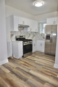 Enter inside to find a bright, open living area with large windows bringing in natural light throughout the day. The updated kitchen features sleek cabinetry, stainless steel appliances, and plenty of counter space—perfect for everyday cooking or entertaining.