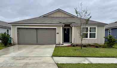 Welcome to this modern and cozy 4 / 2 home, built in 2024. The house offers a spacious open-concept floor plan with luxury vinyl plank flooring throughout the main living areas. The bright, contemporary kitchen features a large island, white appliances, and a generous pantry. The primary suite includes a private bath with dual sinks,a tub with shower, and a spacious walk-in closet. Three guest bedrooms share a stylish full bath. Additional features include a separate laundry room, smart-home technology, two-car garage. Community amenities include a resort-style pool, fitness center, splash pad, playground, and clubhouse. Conveniently located near I-95 and I-295, this home offers quick access to River City Marketplace, UF Health North, Jacksonville International Airport, Downtown Jacksonville, Mayport, NAS JAX, Kings Bay, and the area's beautiful beaches. *Comes with new washer and dryer. Furniture is negotiable*.