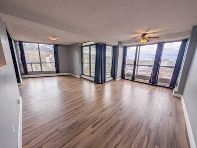 CONDO FOR RENT!! You don't pay water, gas, or hydro!! This beautiful space offers 2 bedrooms, 1.5 bathrooms, kitchen with white appliances, dinning space, a large living area with floor to ceiling windows, and a private balcony featuring stunning city views! Building features include indoor pool, security system, fitness center, and laundry facilities. Centrally located minutes from Jackson Square, First Ontario Centre, multiple transit routes, parks, restaurants, and highway access. Please note that parking is available for an additional fee through condo corporation.