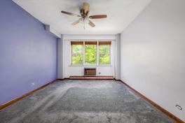 This generously sized one-bedroom apartment offers abundant natural light thanks to a full row of windows illuminating the living space. The home features carpeted floors with original hardwood underneath and excellent closet space throughout.