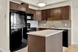 Welcome Home! This charming studio unit is ideally located within walking distance of Rosedale Seniors Lodge and Kipnes Centre for Veterans, making it an excellent choice for family members or individuals seeking a quiet, adult-only building (55+). The professionally managed building offers a range of AMENITIES, including a guest suite, library, exercise room, and social room for private events. Inside the unit, you'll find dark kitchen cabinets paired with a black appliance package and a central island that opens to the living area with newly installed laminate flooring. The high VAULTED CEILINGS enhance the sense of space, while the large storage and laundry room, complete with a washer and dryer, adds convenience. The full bathroom and flex room, offer privacy. Additional storage and a titled parking stall are included. Situated in a peaceful neighbourhood, it's close to shopping, YMCA, bus routes, and Beaumaris Lake. DON'T MISS OUT! Tenant Pays Power. Pets On Owner Approval. Courtesy Realty Focus.