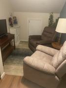 Furnished Private Room w/full size bed, nightstand, two recliner chairs, tv set and desk. One private room and private bathroom in aloft type private area of a new 3 bdr building for rent.