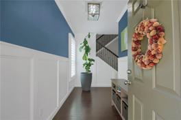 stainless steel appliances, and a large island with bar seating. Upstairs offers a generous owner’s suite with trey ceiling, walk-in closet, and