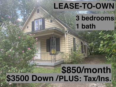 Why rent when you can own! We require a small down payment and offer a monthly payment locked for 30 years. Large home, just over 1000 sq ft, with 3 bedrooms and 1 bath. $3500 down, $850/mo plus taxes insurance..