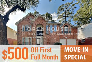 Charming 3 bed, 2.5 bath, 2,291 sq ft home in Humble! Open kitchen concept with updated counters. Primary suite with attached bathroom. Spacious backyard, great for gatherings! Pets accepted on a case by case basis. The Fireplace is decorative. Schedule your showing today! This home is as-is.