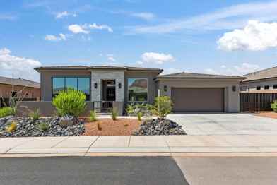 This stylish 4-bedroom, 3-bathroom home offers 2,528 sq. ft. of single-level living with thoughtful design and quality finishes throughout. Built in 2022, the open-concept layout features luxury vinyl plank flooring, large picture windows with Red Rock views, and a striking modern front door.