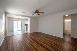 This beautifully designed 3-bedroom, 2-bathroom home features an open-concept great room and kitchen, ideal for entertaining and everyday living. Enjoy hardwood floors, ceiling fans throughout, and a low-maintenance backyard with turfperfect for relaxing or play. With ample storage throughout, this home is as functional as it is stylish.