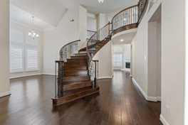 The vaulted ceilings in the family room, hardwood floors throughout the entire house, wrought iron and wood staircases, abundant windows provide an abundance of natural light.