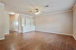 Clean, vacant and move in ready! Beautiful 2 bedroom 2 bathroom, single story Creekside Terrace Condo! This condo is located in an excellent location and features solid surface floors throughout, large living room with built-in shelving, a separate dining room area, spacious bedrooms each with access to the private fenced back yard and more! Conveniently located near great shopping and dining. Enjoy the designated parking and convenient location!