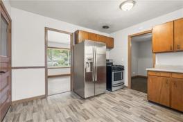 Adorable Raytown Ranch with Deep Garage! This 2-bedroom, 1-bath home offers a great blend of character and functionality. Beautiful hardwood floors flow through much of the home, enhanced by a fresh, modern color palette. The spacious eat-in kitchen, stainless steel appliances, central HVAC, and laundry hook-ups make for comfortable everyday living. Step outside to a large back deckperfect for relaxing or entertainingand a deep garage that provides plenty of room for parking and storage. Located on a quiet street in a well-kept neighborhood.