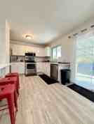The kitchen is equipped with all appliances and a practical layout, coupled with a dining area. Access to shared laundry room with large-capacity washer & dryer.