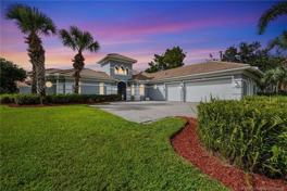 Welcome to your own private sanctuary-an elegant courtyard pool home with guest house, perfectly positioned on over a 1/2 acre with serene golf course and lake views. Step inside the gates of your courtyard where the waterfall pool and summer kitchen awaits. The main residence offers 3 spacious bedrooms, 2.5 baths, and a 3-car garage, while the guest house opens to the poolside retreat-perfect for multi-generational living, hosting guests, or enjoying quiet mornings in privacy. Inside, the gourmet kitchen features stainless steel appliances, double wall ovens, granite counters, and a butler's pantry. The primary suite is a true escape, complete with a cozy sitting area, jetted tub, and a dream closet. A gas fireplace and luxury vinyl plank flooring add warmth and style throughout. Set within the desirable, guard-gated community of Cobblestone at Stuart West, this home offers both peace and convenience. Start living the resort lifestyle you've been dreaming of.