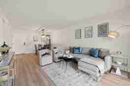 - Bright living room with endless natural light from sliding glass doors