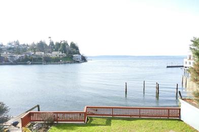 Introducing our stunning 2-bedroom, 1.5-bathroom apartment located on the waterfront with views of the Puget Sound and Olympic Mountains. This townhouse style unit is located on the top floor and features spacious living spaces, a half bathroom on the main floor, a wood burning fireplace, a dishwasher, and a west facing deck with sprawling views. Head upstairs to both bedrooms and the shared bathroom with access from inside each bedroom. There is vaulted ceilings and another deck off of the primary bedroom with gorgeous views. Additional features include a full size washer and dryer and a carport parking spot.