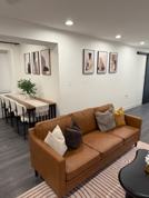 Step into a stylish living room that features a custom media wall, recessed electric fireplace, and cozy vibes for movie nights or unwinding after a day in the city. Cook like a pro in the chef-inspired kitchen complete with 42” cabinets, sleek quartz countertops, stainless steel appliances, and designer backsplash.